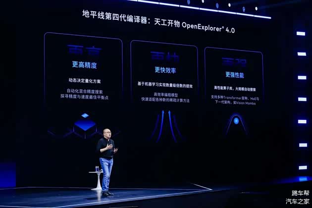 地平线的编译器技术同样经历了三代迭代。本次大会还发布了第四代编译器天工开物OpenExplorer 4.0,实现了更高精度、更快效率和更强性能的突破,编译速度从小时级提升至分钟级,模型性能提升20%。其革命性在于引入了AI驱动的优化策略,标志着编译器技术从工具自动化,迈向了基于机器学习的自我进化新时代。
