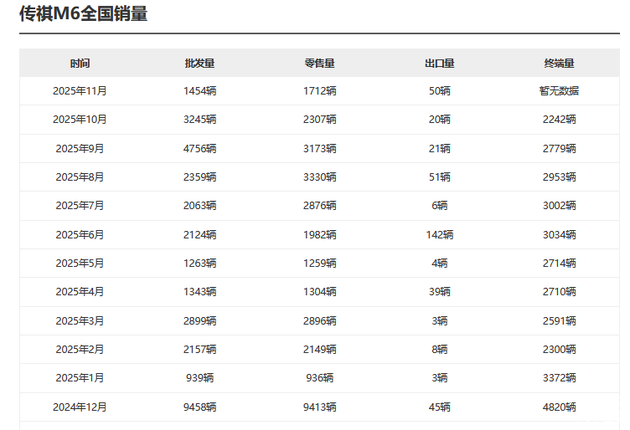 至于传祺那两款车,E8只是小降两百多台,但M6就有点惨了,本来今年稳定在3000+台,但10月、11月环比降幅都在25%以上,如今只剩下三个月前的一半体量。