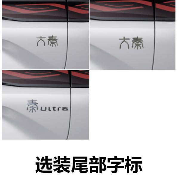 值得一提的是,工信部申报信息中显示秦MAX有多种尾部字标可选装,包括“大秦”、“秦Ultra”字样,沿用小篆字体,视觉观感还是不错的。