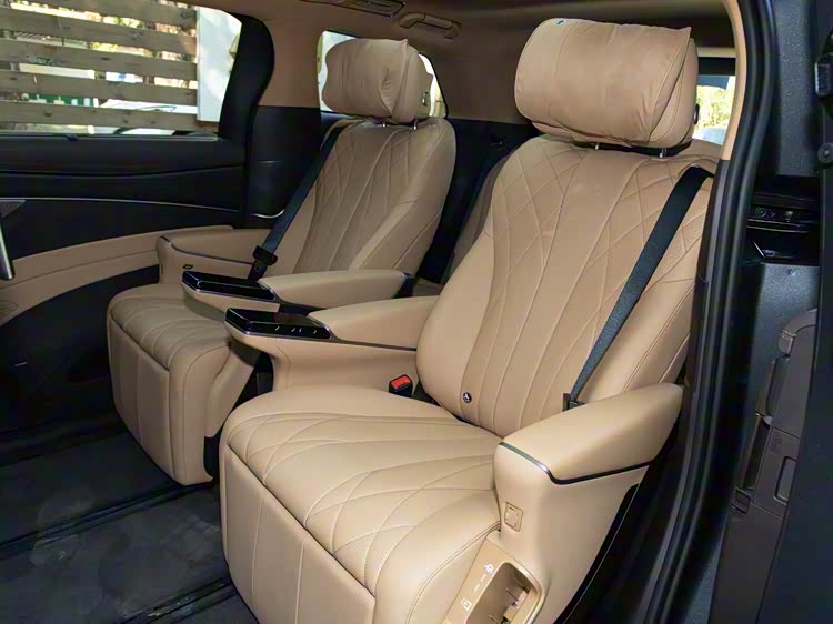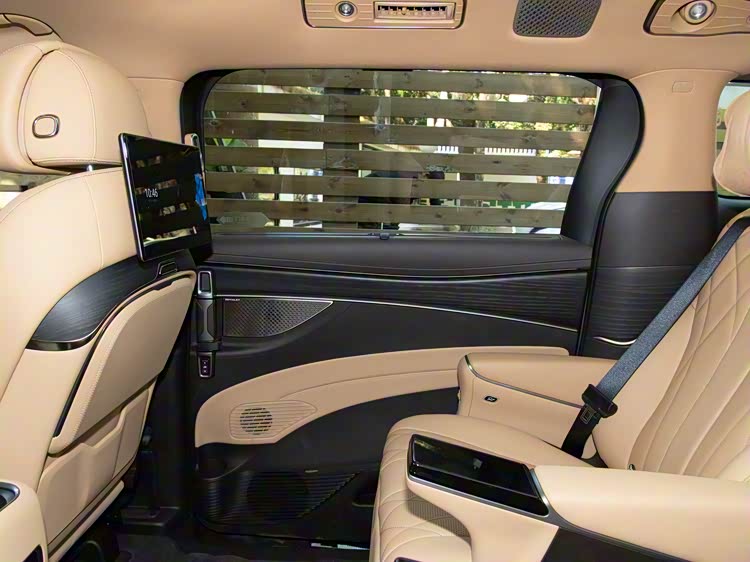 车内才是宝藏空间,3米11的轴距实现了“真三排平权”,1米8的大人坐第三排膝盖还有富余。中排Air SPA零重力座椅是点睛之笔,16点按摩、加热通风全配齐,靠背能调到152°,老人长途坐着也舒坦。7.5L冷暖冰箱能冻饮料也能温牛奶,露营时外接电源还能煮火锅,实用性绝了。