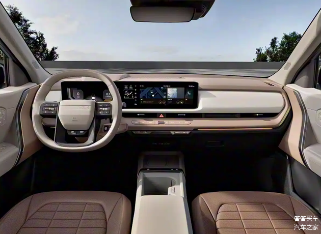内饰方面,新车在中控台上设计了双联屏,内饰采用更多的软性材质覆盖,中控台上的物理按键被保留,提供黑绿、黑白、浅棕与白三种颜色组合,细节处以镀铬饰条点缀。
