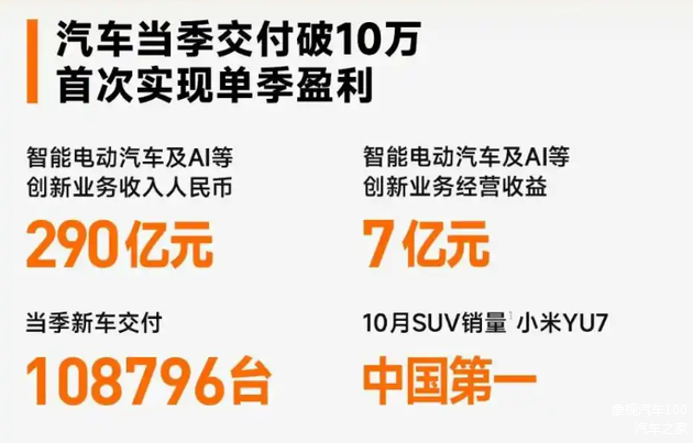 需要特别指出的是,刷新行业的销量和盈利速度,小米仅仅只用了SU7和YU7两款车就实现了。