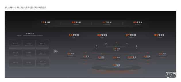 作为行业安全技术的先行者与引领者,吉利在“全域AI”技术体系的赋能下,以“AI为纲 责任为本”,基于原有的“全域安全”技术体系进阶打造“全域安全2.0”技术体系。结合智能时代的安全新需求和新挑战,“全域安全2.0”技术体系秉持“以人为尊”理念,通过技术升级、能力突破与范式创新,将侧重“整车安全”的视角升级为“人-车-路-云-星”的生态视角,旨在贯穿用户出行全场景、覆盖出行全领域、联动出行全生态;并以“生命零伤亡、健康零危害、财产零损失、隐私零泄露”四大安全愿景为指引,逐步构建的一套为消费者提供全面的安全保障技术体系。