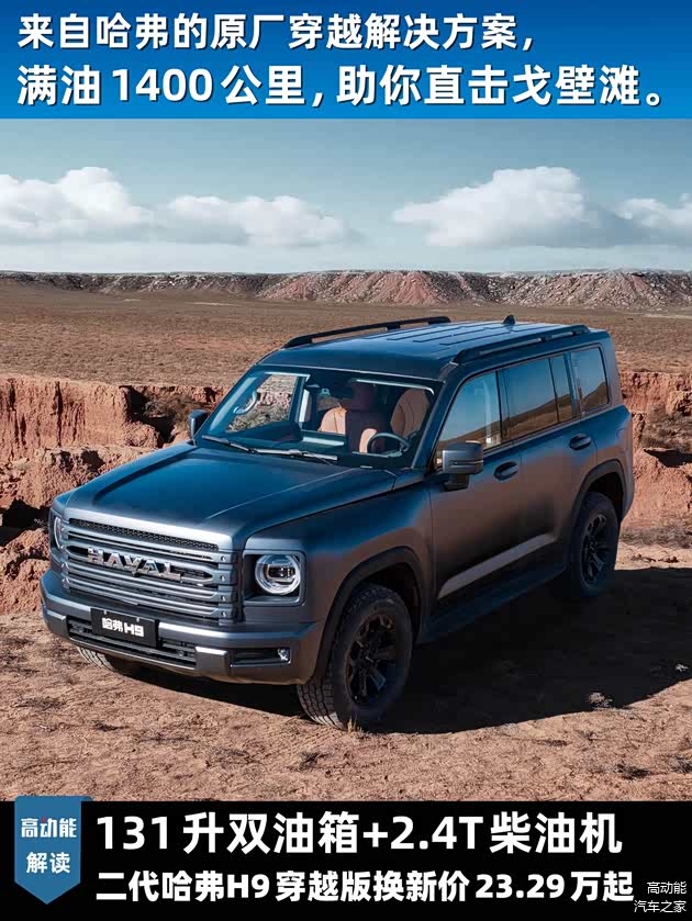 传统长途穿越对车辆性能、可靠性要求严苛,通常意味着高昂成本。哈弗H9穿越版以约23万元的实际成交价,提供131升双油箱、三把锁、原厂升高等核心配置,降低了长途穿越的准入门槛。