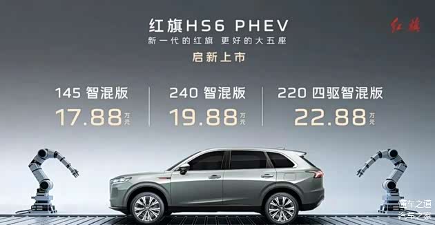 【懂车之道 产品】近日,懂车之道获悉,12月16日,一汽 红旗HS6 PHEV正式发布上市,共推出3款配置车型,官方售价区间为17.88-22.88万元。新车定位中大型SUV,下面,和大家一起来看看新车的产品力如何?
