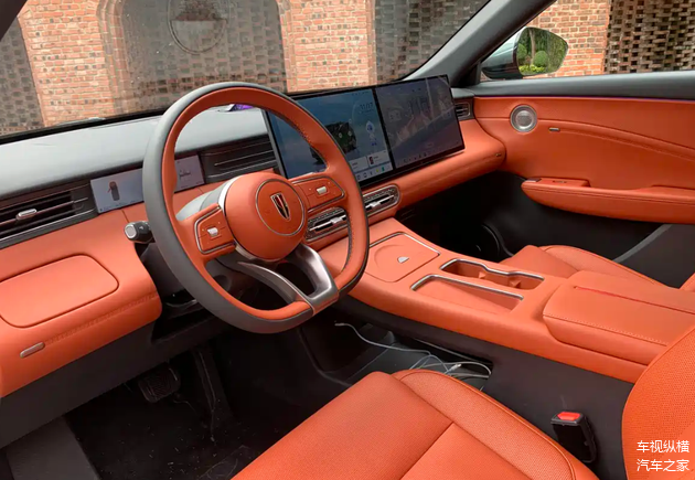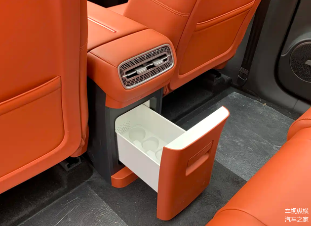内饰兼顾科技感与实用性:配备内嵌式全液晶仪表盘与双色三辐式多功能方向盘,操作逻辑清晰。中控台采用多媒体屏与副驾屏组成的双联屏设计,屏幕尺寸15.6英寸、分辨率达2.5K,内置高通骁龙8295P芯片,保障系统运行流畅性。舒适性配置方面,第二排搭载大容量冰箱和电动调节座椅,高配车型支持座椅通风、加热功能;音响系统提供12/16扬声器的丹拿配置。