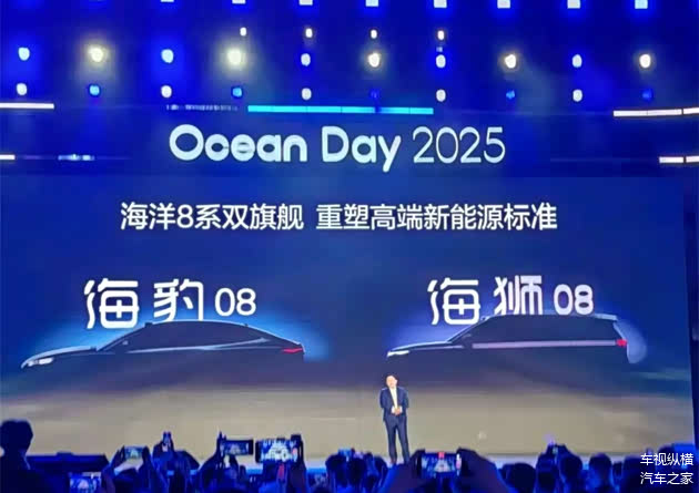 更为值得关注的是,四周年盛典上官方正式公布重磅消息——海洋8系双旗舰车型定名海豹08与海狮08,将于明年第一季度正式亮相。这两款车型并非简单的改款升级,而是海洋网冲击高端新能源市场的核心战略产品。从已披露的信息来看,二者均源自Ocean S概念车,采用全新一代海洋美学设计语言,将搭载比亚迪最新的电池技术、高阶智能驾驶辅助系统及智能座舱解决方案。