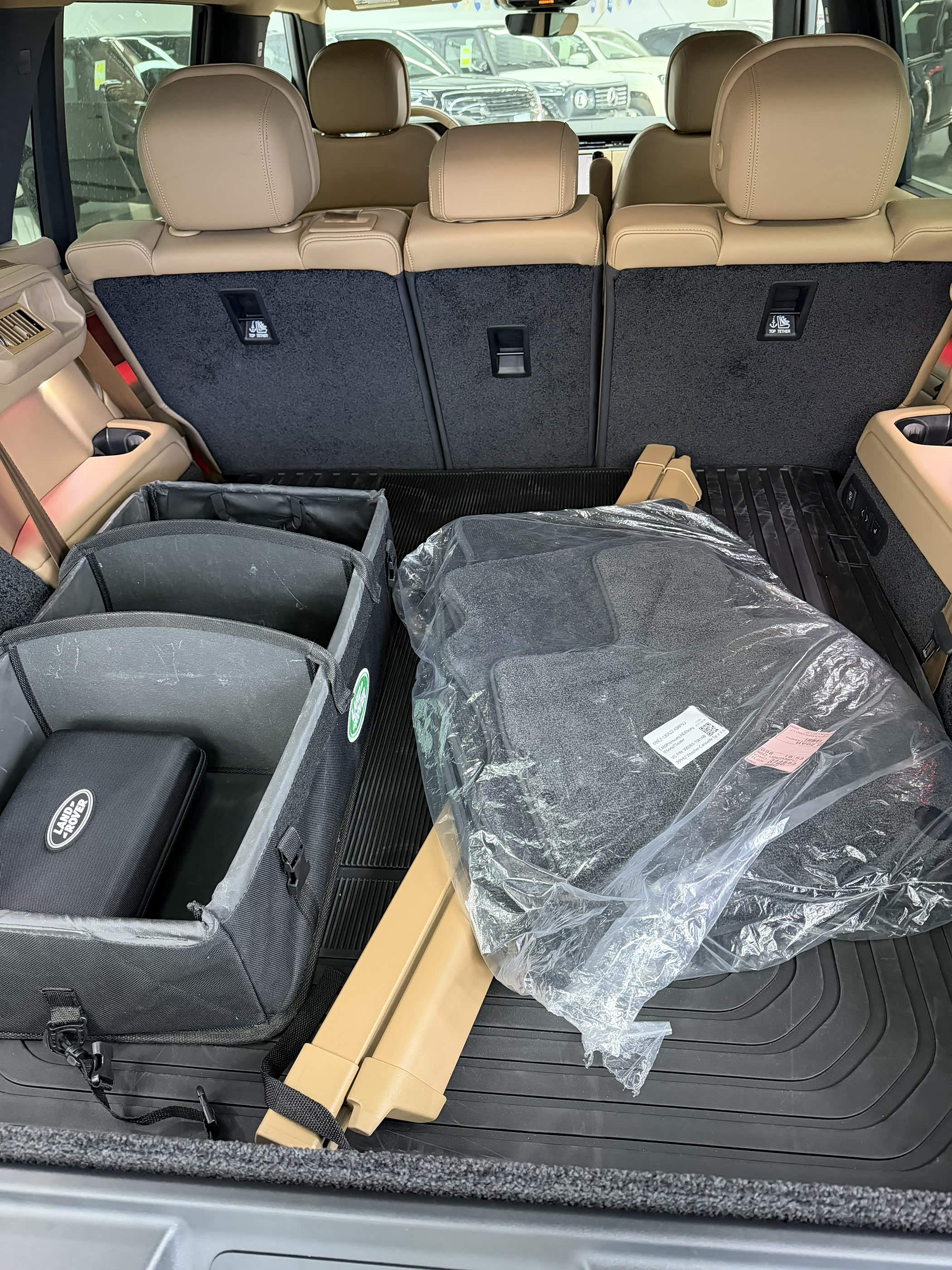 本家车熊猫版25款美版路虎揽胜加长 (7座) 白/棕 现车手续齐 25年8月 选装配置: 暗影外观包 黑色对比车顶 23寸熏黑轮毂 像素式LED带标志性日间行车大灯 800瓦3D高级音响 抬头显示 SV定制木质真皮双拼方向盘 高级内饰升级包(SV定制全扩展真皮 SV定制脚垫 太阳能衰减风挡玻璃) 整车玻璃双层夹胶玻璃 二排隐私玻璃 寒冷气候包(加热风挡玻璃 加热式清洗喷水嘴) 高级内饰保护及存储包(胶质脚垫,后备箱垫 储物盒) 轮毂锁 急救包
