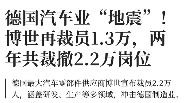 近日,汽车零部件巨头博世抛出重磅消息:至2030年将在德国汽车零部件业务部门裁撤1.3万个岗位,核心瞄准燃油车相关业务线,目标通过此次裁员每年削减25亿欧元成本,以应对行业转型带来的盈利压力。这是博世继2024年裁员9000人后,再次挥刀降本,也让传统汽车业的转型阵痛彻底暴露在公众视野中。