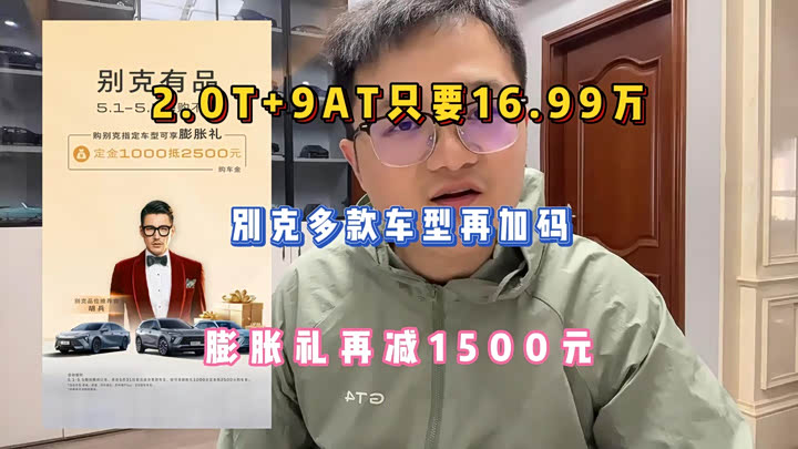 传奇聊电车2.0T+9AT只要16.99万,别克多款车型再加码,膨胀礼再减1500元