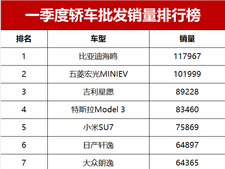 汽车公社一季度轿车批发销量榜!海鸥领跑,轩逸险胜朗逸,卡罗拉第53名