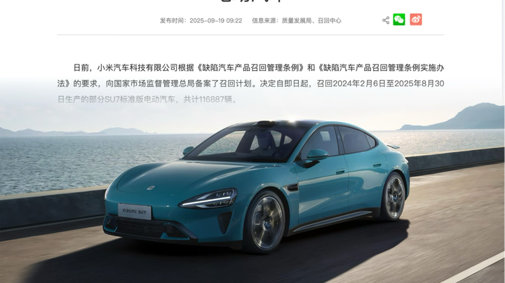 AL频道小米汽车召回11万多辆SU7,技术升级也算?