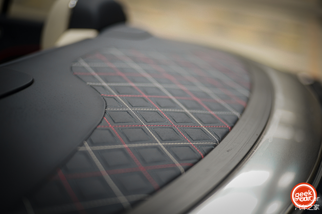 仔细观察,甚至每一针的缝线都是由红白蓝三种颜色构成的,头颈处还配备了出风口让你即使在寒冬打开敞篷,也可以有一股暖流吹拂你的左右。