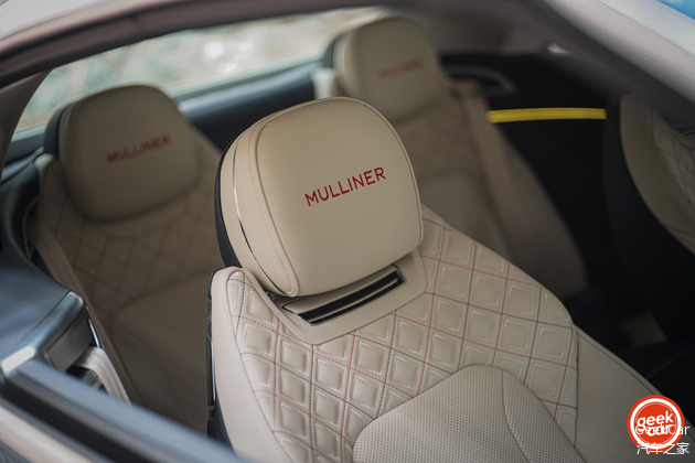 座椅和内饰门板上又再一次出现了 Mulliner 独特的双菱形设计,菱形叠加菱形的层层嵌套,再加上整车 40 万针的织绣工艺,让一块简单的真皮也凸显出无限的可能。