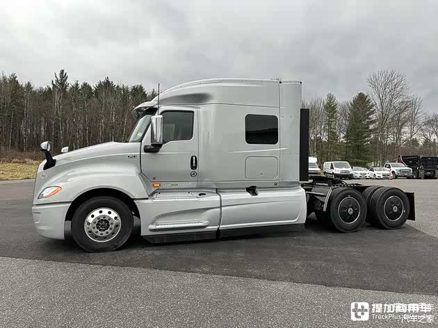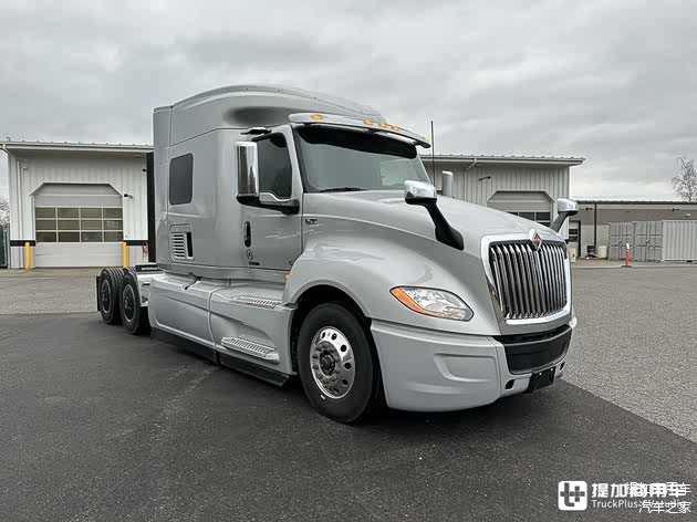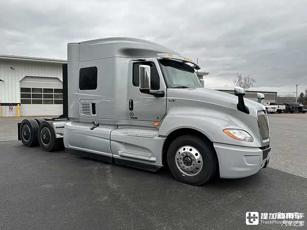 实拍的万国LT采用6x4长轴距底盘,搭载73" HI-RISE SLEEPER驾驶室。这款驾驶室是万国LT可选的第二大驾驶室,在其之上还有车顶更高的73" SKY-RISE SLEEPER驾驶室。在驾驶室侧面,车辆设计了方形侧窗。左侧侧窗下方为储物舱门,而右侧侧窗下方则是车辆的空调冷凝器。