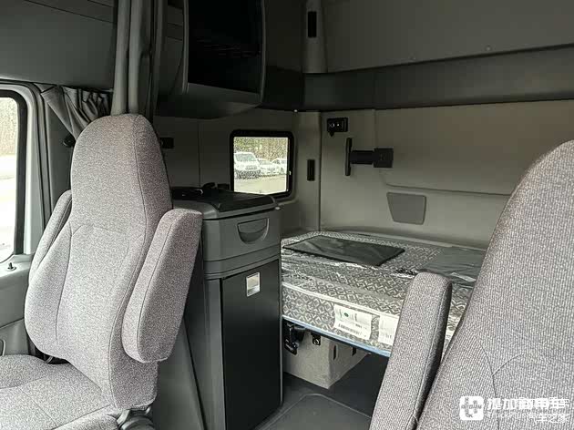 卧铺宽度达到了一米有余,超厚的床垫和超宽的尺寸能带来舒服的睡眠体验。左右侧窗增强了采光、降低压抑感,并且还可打开用于通风。驾驶室后壁上安装了电视旋转支架,不过还未安装电视,可与后期加装。
