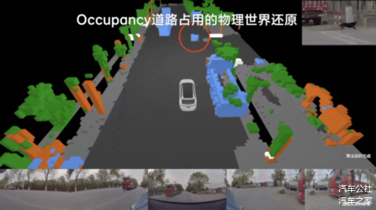 在特斯拉的带动下,过去的后融合算法逐渐被抛弃,转而使用前融合的BEV算法,也就是把摄像头的感知到的画面直接扔进AI算法里,生成一个鸟瞰视角的3D空间,并在这个空间内输出感知结果。