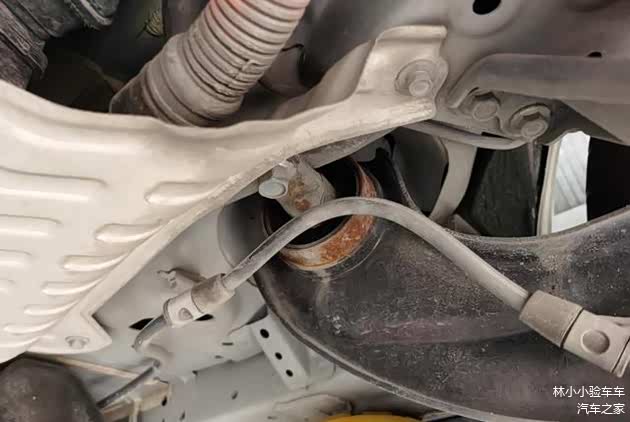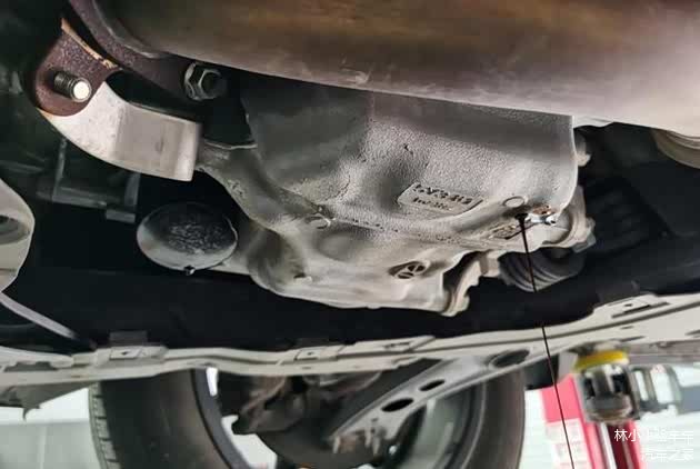师傅把车开到举升机上面,准备把车升起来放机油。