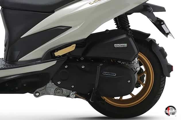 大阳VRS125/150系列踏板之所以要比同级别国产车型价格略高,其动力性能是其一大亮点。采用了电助力驱动方式,在起步加速阶段,Vi-Core 4.0系统能够提供0.6kW的电助力,能持续10秒时间,可以轻松完成起步超车这些动作。动力系统搭载一台单缸水冷四冲程发动机,实际排量为124cc。内部采用SOHC四气门结构设计以及博世电喷系统,最大马力达到15匹,最大功率11kW/8500rpm,最大扭矩12.5Nm/6500rpm。单就动力性能而言,甚至超过了150cc踏板。