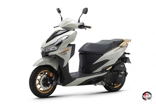 VRS125/150外观设计与标准版车型保持一致。整车以运动化的风格呈现,紧凑灵活的车身形态,车身细节刻画的较为运动凌厉,尤其是前脸造型以及车身侧面装饰组件,营造出了运动小踏板的激进风格。纪念版车型推出了两款全新配色,以及全新的车身版画。其中轮毂、后货架以及车身上的logo标志采用了金色涂装,视觉效果更加醒目。