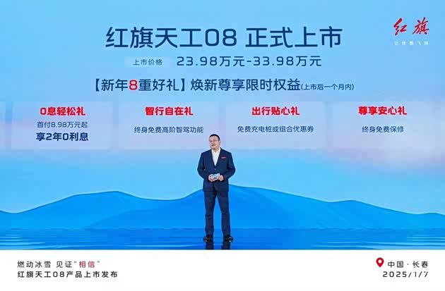 1月7日,经过多次“跳票”后 红旗天工08终于上市了。新车共推出5款车型,官方指导价格为23.98万元—33.98万元。