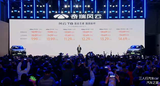 而奇瑞汽车旗下的全新中型插混SUV——风云T8在今晚正式上市,它的售价10.39万-15.09万元。而且还推出限时抢鲜价:9.99万起!作为一款5+2座插混SUV,风云T8以“长续航、高性价比、智能化”为核心卖点,那么这款车能否在10万级市场重新定义“国民车”标准呢?接着往下看!