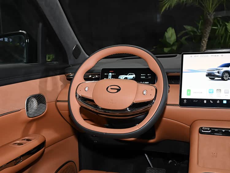 平底的两幅式方向盘,带多功能控制,可上下/前后四向调节,操作起来更加便捷。中控台是双层的,设计时尚新颖,贯穿式空调出风口设计很大气。车辆还搭载了AI智能座舱,以“科技豪华”为设计理念,配备大尺寸横向中控显示屏,搭载高通8295芯片,支持语音交互、手势控制、面部识别等多种交互方式,支持手机远程控制、OTA在线升级等功能,随时随地掌控车辆状态。具备四音区识别功能,无论是坐在哪个位置,乘客都可以唤醒语音助手,轻松发布指令。