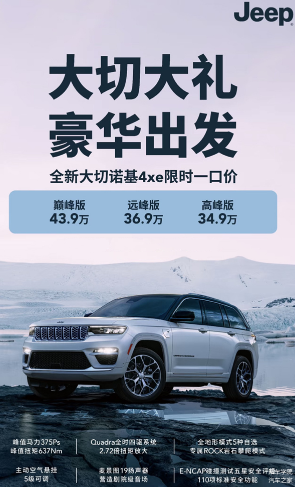 当冬日的序章在万物萌动中谢幕,Jeep全新大切诺基4xe携雷霆之姿破晓春境。无论都市楼宇间辗转腾挪,抑或旷野山峦中纵情驰骋,这辆混动猛兽始终以游刃有余的姿态,带您解锁春日的无限可能!