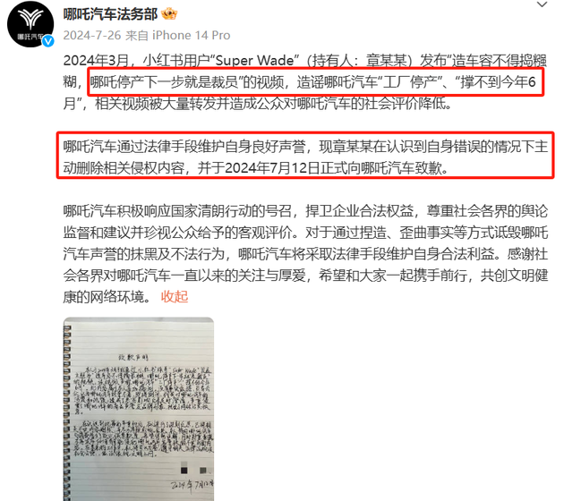 2024年开年的诸多消息,都暗示着哪吒汽车面临的问题极大。不过哪吒汽车拿起了法律的手段,让这些造谣的人闭嘴了,因为哪吒汽车撑过了去年6月份,到现在还在撑着。