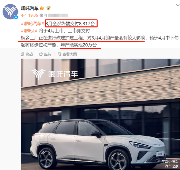 接着就是3月6日,有媒体实地调研后发现哪吒南宁工厂停产半个多月了,员工等待复工通知。南宁工厂停摆的原因是暂时不需要这么多生产线,并且该地区未承担生产今年哪吒推出的新车型。