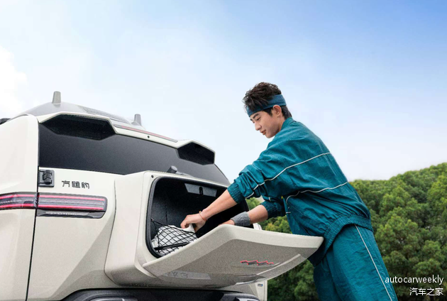 还有灵活的储物空间,车尾的小书包不是备胎也不是装饰件,而是一个28升的储物柜,不光能支持无人机版放备件,还可以放那些需要与座舱隔绝的东西,比如官方海报上给的思路——男生运动后的臭球鞋。