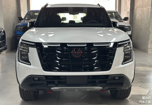 从外观设计来看,途乐Pro-4X尽显硬朗本色。其分体式大灯与C型LED日行灯的组合,犹如犀利的双眸,在茫茫车海中格外醒目。熏黑的大尺寸网状格栅搭配红色日产LOGO,仿佛是越野战甲上的醒目标识,瞬间点燃了运动与越野的激情。车身侧面,刚毅的线条勾勒出雄浑的轮廓,20英寸的黑色轮毂搭配全地形轮胎,宛如强壮的四肢,赋予车辆强大的力量感。尾部设计同样延续了硬朗风格,方正的车尾与熏黑尾灯相得益彰,辨识度极高,仿佛在向世界宣告其无畏的越野精神。