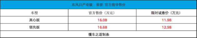 【懂车之道 产品】近日,懂车之道获悉,7月2日,广州, 东风日产奇骏·荣誉正式发布上市,共推2款车型,官方售价区间为16.08万-16.68万元,限时诚意价11.98万-12.58万元。新车作为奇骏·经典荣冠版的改款升级版,新车将对外观、配置等方面进行升级。新车定位为紧凑型SUV,下面,和大家一起来看看新车的产品力如何?