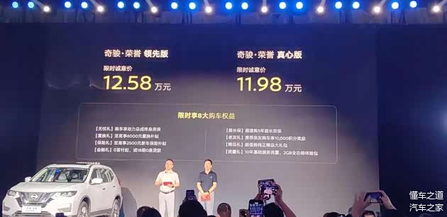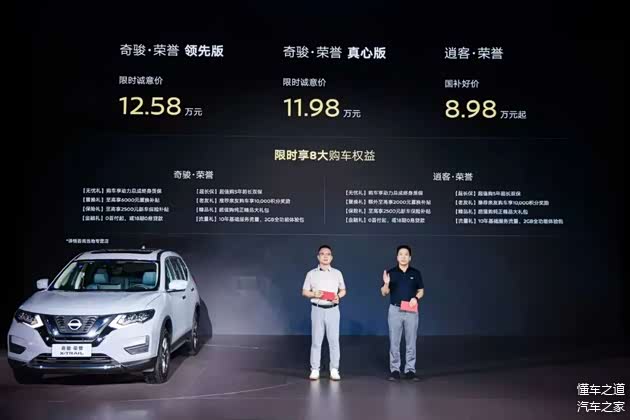 发布会现场,东风日产同步发布了逍客荣誉版车型,国补好价为8.98万起。