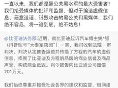 捍卫品牌正当权益,比亚迪怒告黑粉200万!网友:早该治治了!