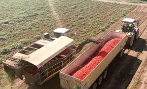 自走式的番茄收获机工况展现 主要采摘用于深加工的番茄原料