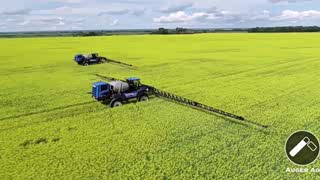 植保打药机喷洒除草剂航拍记录 两台纽荷兰SP370F执行打药任务