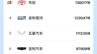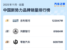 新势力销量榜,吉利银河被列入该榜单,并且以123047辆的实力排名第一。 在此前的新势力中,其实是不包含吉利银河的,但是方程豹、长安启源既然在,吉利银河也是加入排名也是顺理成章的。因此,我们熟知的鸿蒙智行、零跑汽车排在了第二和第三的名次,销量分别达到了8万辆以上和6万辆以上。问界、小米汽车紧随其后。方程豹、理想汽车、小鹏、长安启源和极氪排在6-10位。理想汽车超越小鹏,但是差距有限。