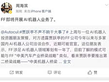 贾跃亭悄然布局AI机器人,FF与国内顶尖机器人公司合作或将官宣