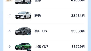 车系月销榜方面,宏光MINIEV以56756辆位列榜首,Model Y销量47132辆,屈居第二,星愿以42038辆位列第三。轩逸和秦PLUS分列第4、5位,二者销量在3万辆以上。明星车型小米SU7以33729辆,排名第5。博越L、速腾、Model 3、问界M7排名6-10位。特斯拉两款车入选榜单,实力相当霸气。