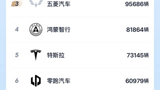 11月新能源品牌榜,比亚迪、吉利银河、五菱汽车排名前三,比亚迪销量超过了吉利银河和五菱汽车销量总和。鸿蒙智行、特斯拉排在第4、第5。零跑汽车、问界、小米汽车、方程豹、理想汽车排在6-10位。