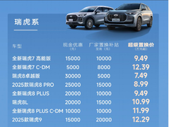 奇瑞购车优惠,包含瑞虎8/艾瑞泽8/瑞虎5x等多款车型