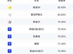 2021上半年紧凑型、中型和中大型轿车三年保值率排名——思域、奥迪S4、雷克萨斯ES分别是各自细分市场保值率最高的车型。