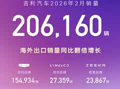 3月1日,吉利汽车控股有限公司(0175.HK)公布最新销量数据:2月乘用车销量206160辆,开年连续两月保持同比正增长。2026年1-2月累计销量达476327辆,延续稳健增长态势。其中,新能源销量(含吉利银河品牌、领克品牌、极氪品牌)达117488辆,同比增长19%。2026年1-2月新能源累计销量达241740辆,同比增长10%。在海外市场,吉利汽车竞争优势持续扩大,2月海外出口销量60879辆,同比大幅增长138%。