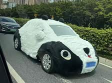 【甲壳虫化身大熊猫出街】近日,有人拍摄到路上一台甲壳虫被改成了大熊猫毛绒玩具,在路上十分的抢眼,不过看前面有拍摄车,推测应该是剧组进行拍摄而改装。
