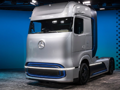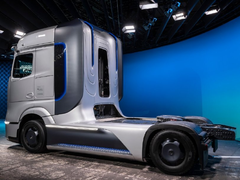 【梅赛德斯-奔驰GenH2燃料电池概念卡车】近日,梅赛德斯-奔驰GenH2燃料电池概念卡车发布,新车的外观很有未来感,LED大灯贯穿整个前脸,整体车头设计的比较圆润。动力方面,该车使用能量密度更高的液氢(非气态氢)燃料驱动,最大续航里程超过1000公里。