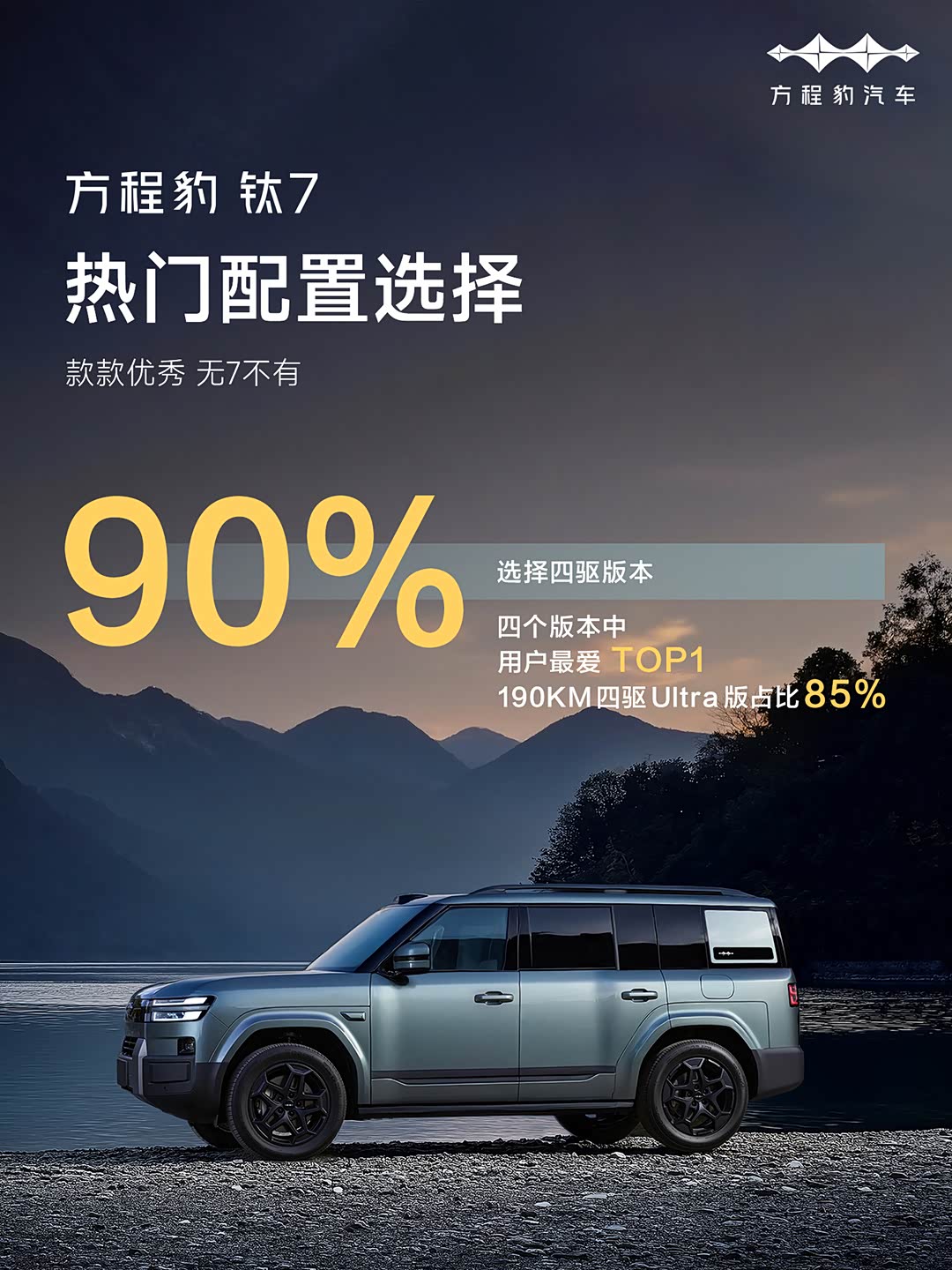 钛7首个完整月销售战报来了,知道它会卖的好,但11674台确实是有点猛,同时也刷新了方程豹的品牌新记录~ 更有意思的是,买它的人有85%都选择了顶配四驱Ultra版。为什么大家这么钟情顶配?关键就在于它独有的“天神之眼B”辅助驾驶系统。它配备了激光雷达和大量传感器,能全方位感知路况。前不久就有车主靠着它的城市领航功能,成功避免了一次危险的鬼探头,用真实经历证明了它的安全价值,这正是硬核实力守护安全出行的体现。 更让人安心的是,笛子官方承诺:使用其泊车辅助功能出事故,厂家全部负责~天神之眼A、B、C都是包的~这份底气,彻底解决了用户的后顾之忧。 同时,这套系统还能持续升级,真正做到常用常新,好技术造就好产品,钛7的热销证明,用实实在在的硬核科技解决用户痛点,就是赢得市场认可的最好方式~