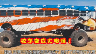 改装一辆校车,装上66寸的轮胎,让它变成大脚怪!