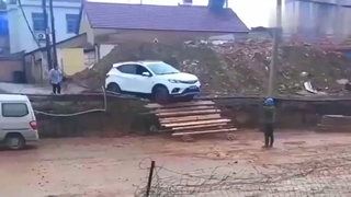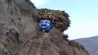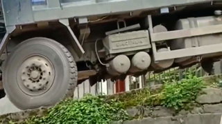 大货车司机胆子真大!前轮已经悬空,就不怕翻车吗?