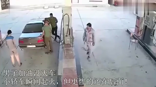 美国司机加油时汽车突然着火,下一步的处理方式太牛了